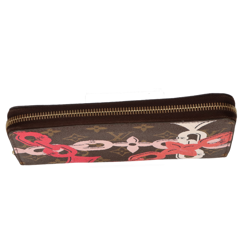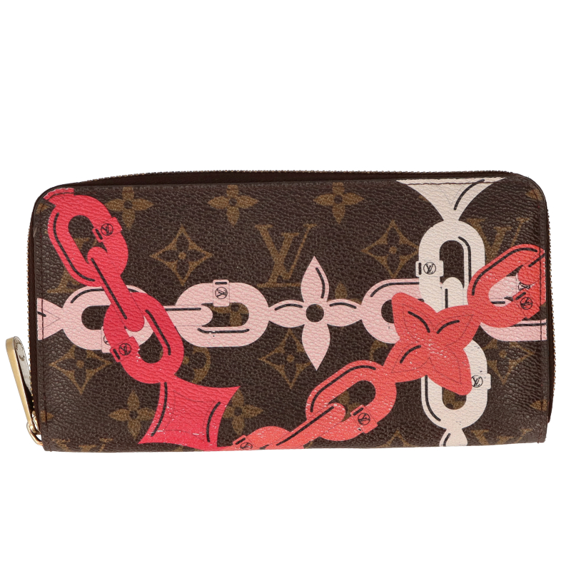 USED品。廃盤品。定番のモノグラム地にカラフルなチェーンプリントが美しいオシャレなデザインのラウンドファスナー長財布。ポケット数も多く機能的で、永くご愛用いただけるお品です。