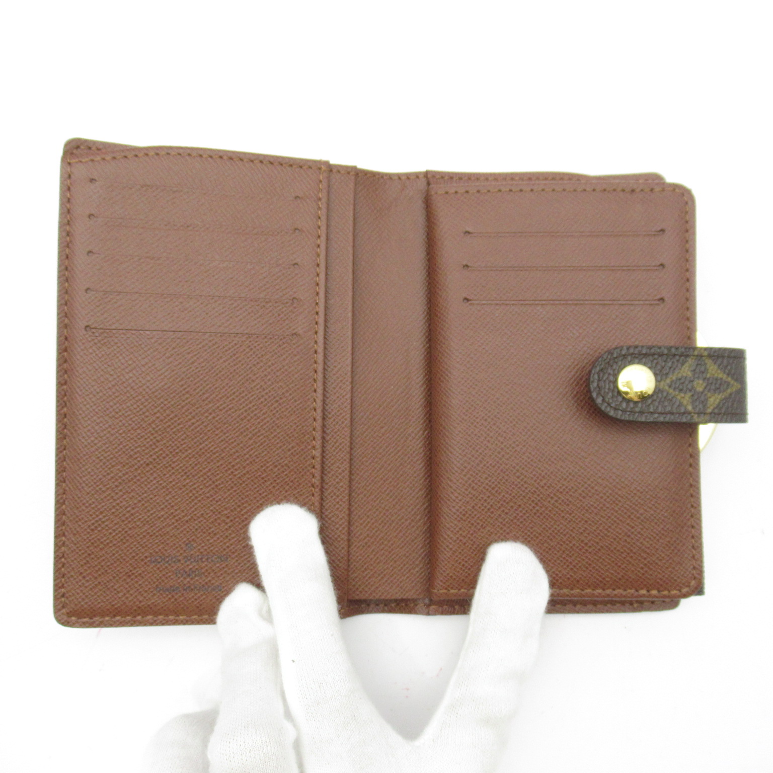 USED品。廃盤品。硬貨の取り出しに便利ながま口の小銭入れ、深めの紙幣ポケットが収納力抜群で実用的なお財布です。モノグラムの財布は定番人気ですので長年ご愛用いただけます。