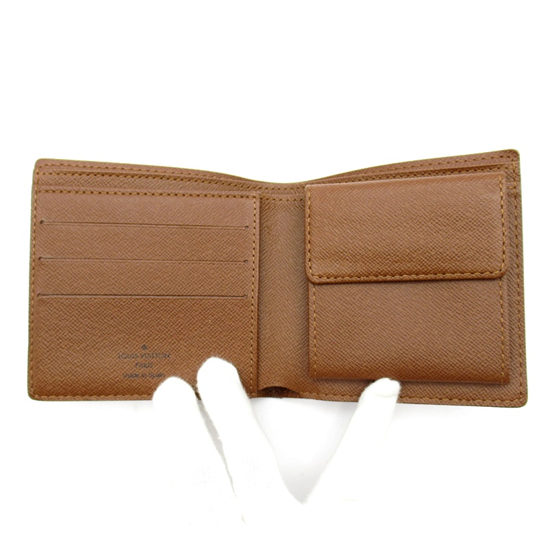 USED品。紙幣、カード、レシート等を整理して収納できる機能性の高い、モノグラムの定番コンパクトサイズの二つ折財布です。