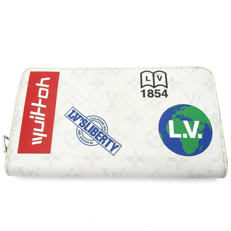 USED品。ルイヴィトン定番人気モノグラム柄の長財布はパスポートやチケット等も収納頂ける収納力抜群なオーガナイザー。こちらは新作の2019年秋冬メンズプレコレクションで、ホワイトモノグラムのキャンバスにルイ・ヴィトンならではのモチーフとカラフルなプリントステッカーがおしゃれです。