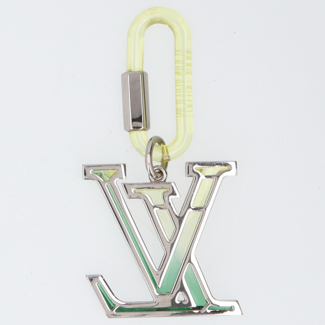 USED品。シルバー金具。「LVロゴ」をデザインしたインパクトのあるキーリングです。イエローとグリーンを基調に印象のある造りとなっております。