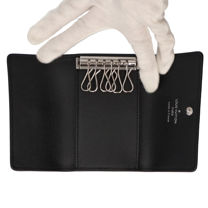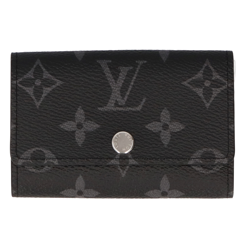 新品。モノグラム・エクリプス キャンバスでエレガントに仕立てた、スタイルと機能性を兼ね備えた「キーケース ミュルティクレ 6」。スナップボタンやキークリップなど、シルバーカラーのメタルパーツが彩りを添えます。