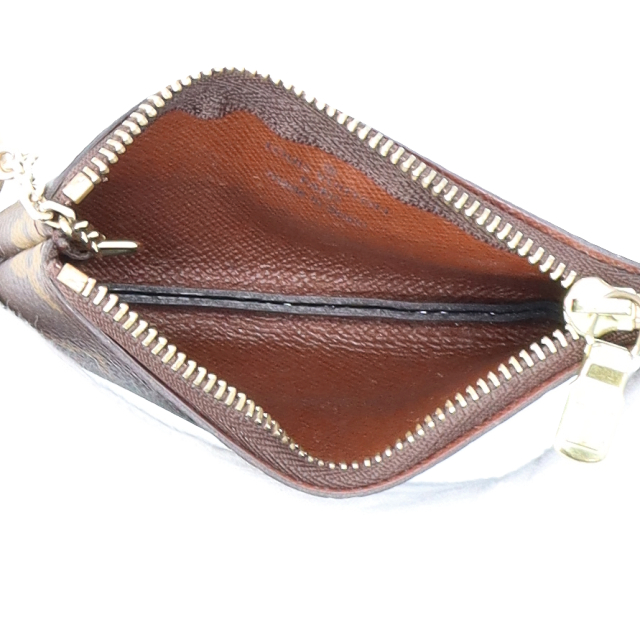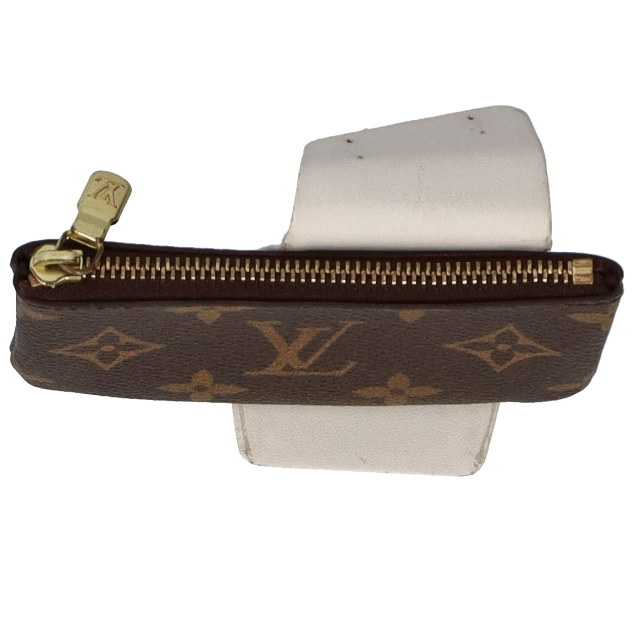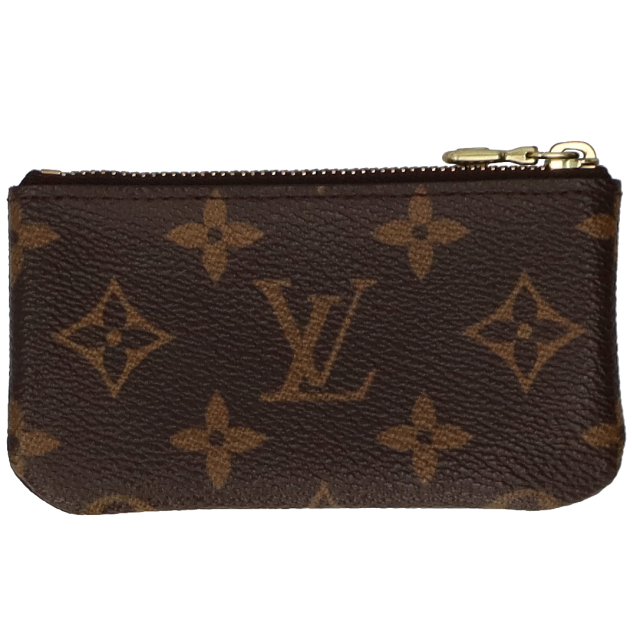 USED品。アイコニックなモノグラム・キャンバスを使用し、遊び心と実用性を兼ね備えた「ポシェット・クレ」。コイン、カード、折り畳んだ紙幣や鍵など身の回りの細々としたアイテムを収納できるキーケースです。ルイ・ヴィトンのバッグに付属のDリングに取付けたり、バッグやベルトのチャームとしてもお使いいただけます。LVの刻印入りの引き手が特徴のファスナー開閉式のアイテムです。