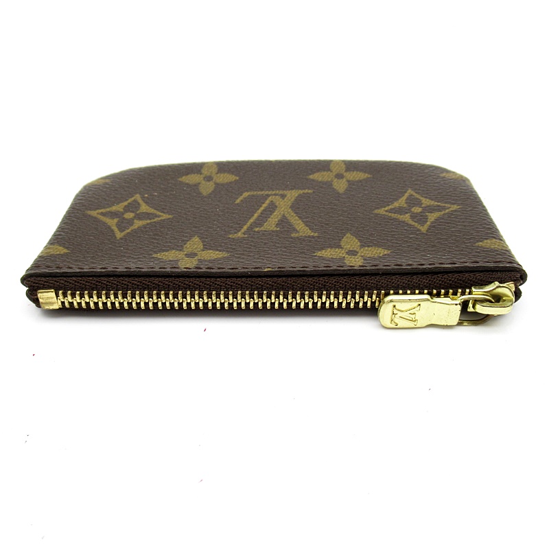 USED品。アイコニックなモノグラム・キャンバスを使用し、遊び心と実用性を兼ね備えた「ポシェット・クレ」。コイン、カード、折り畳んだ紙幣や鍵など身の回りの細々としたアイテムを収納できるキーケースです。ルイ・ヴィトンのバッグに付属のDリングに取付けたり、バッグやベルトのチャームとしてもお使いいただけます。LVの刻印入りの引き手が特徴のファスナー開閉式のアイテムです。