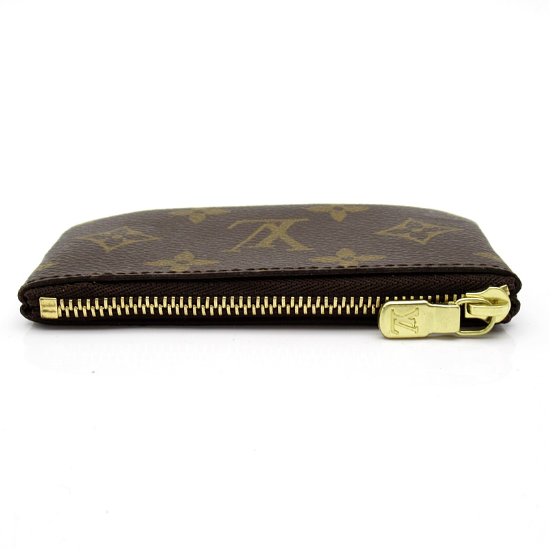 USED品。アイコニックなモノグラム・キャンバスを使用し、遊び心と実用性を兼ね備えた「ポシェット・クレ」。コイン、カード、折り畳んだ紙幣や鍵など身の回りの細々としたアイテムを収納できるキーケースです。ルイ・ヴィトンのバッグに付属のDリングに取付けたり、バッグやベルトのチャームとしてもお使いいただけます。LVの刻印入りの引き手が特徴のファスナー開閉式のアイテムです。