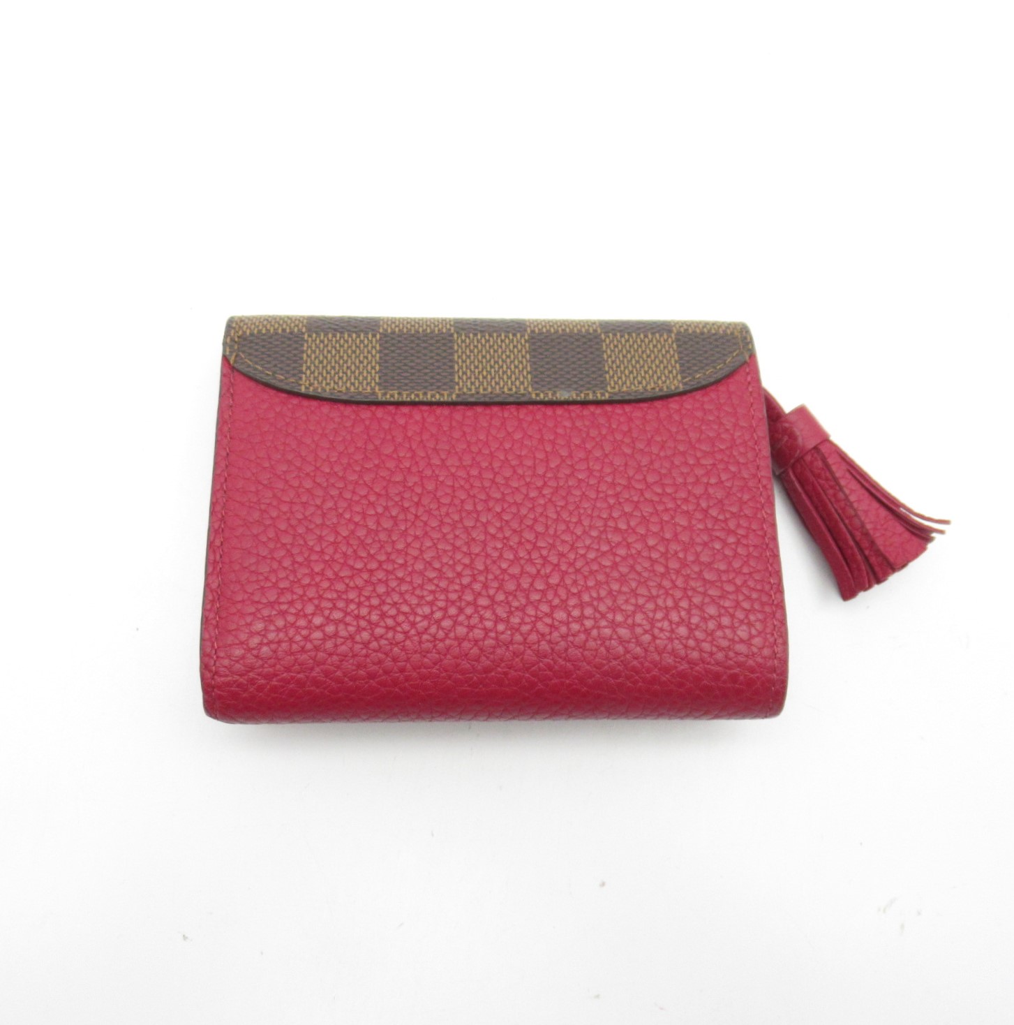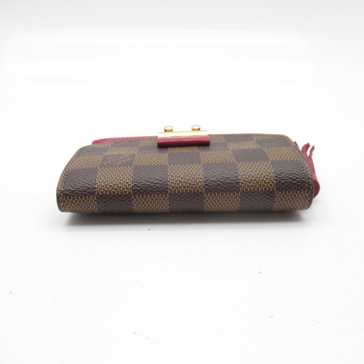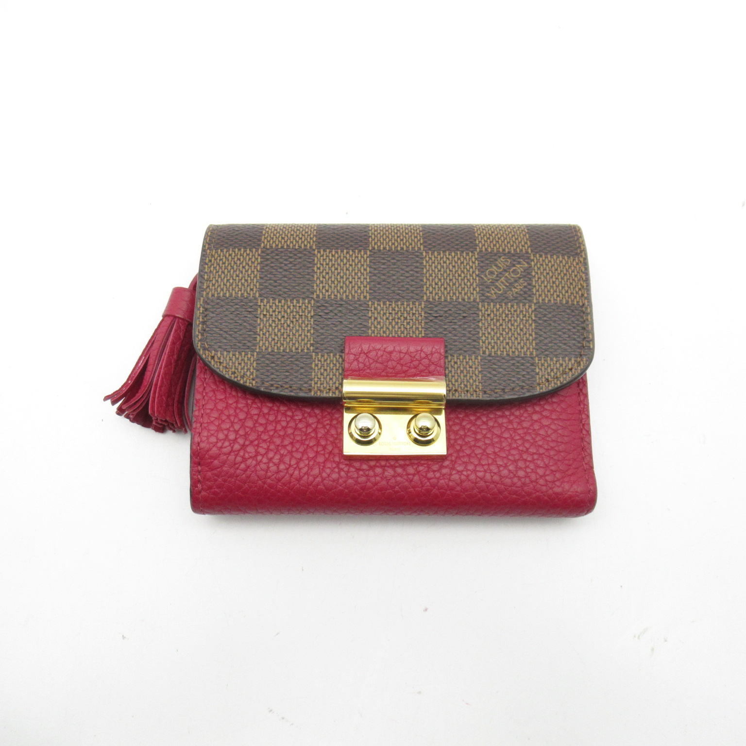 USED品。廃盤品。ダミエ・エベヌ キャンバスとカーフレザーを組み合わせたエレガントな財布「ポルトフォイユ・クロワゼット コンパクト」。小ぶりな三つ折りタイプでありながら、紙幣や小銭、カードの収納スペースも備わります。