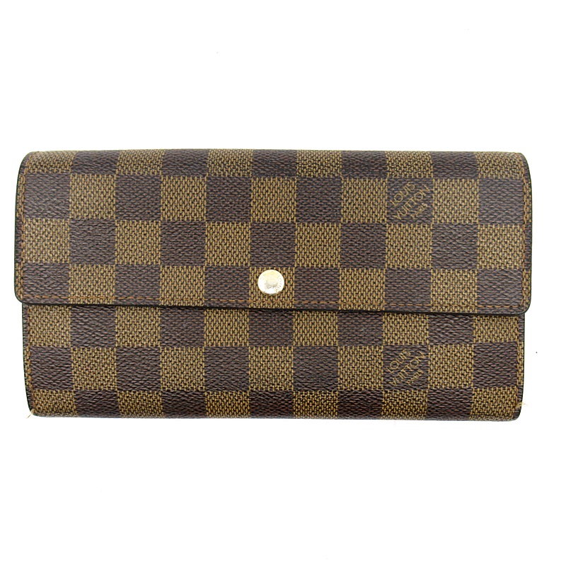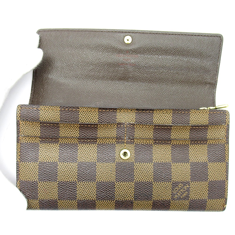 USED品。廃盤品。落ち着いた優美さと幾何学的なモチーフが魅力的なダミエラインの、紙幣、カード、レシート等を整理して収納できるファスナー付き長財布です。