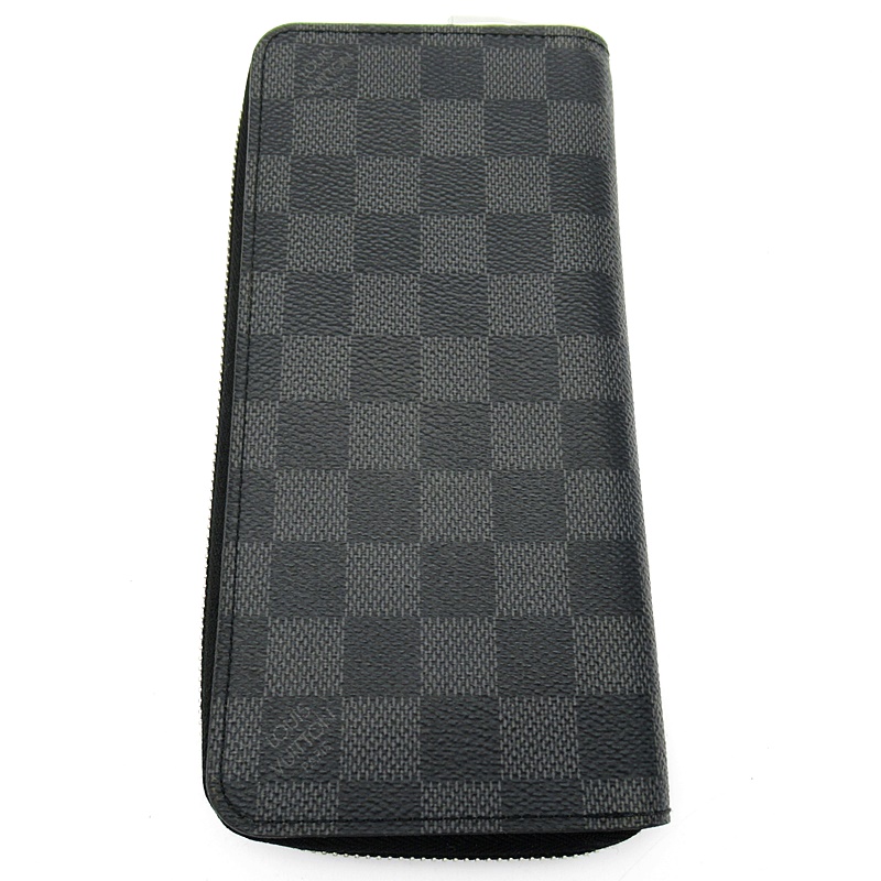 USED品。すっきりとした縦型がマスキュリンでありながらエレガントな魅力を放つダミエ・グラフィットの財布「ジッピー・ウォレット ヴェルティカル」。ポケットやクレジットカードスロットが充実しており、機能的です。