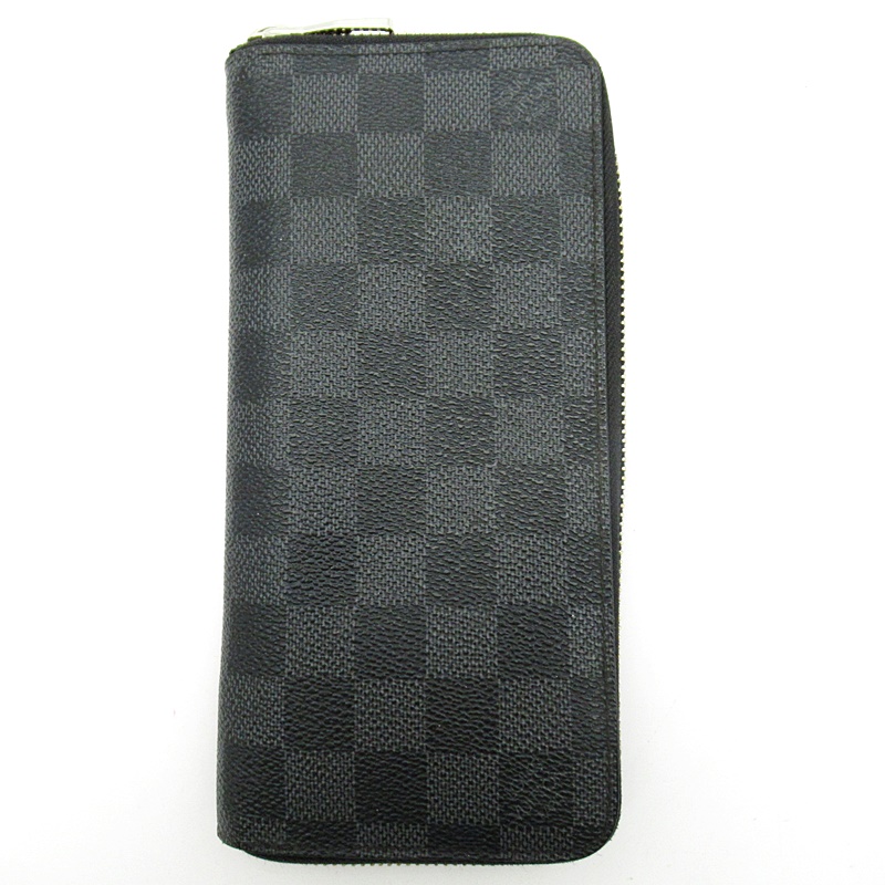 USED品。すっきりとした縦型がマスキュリンでありながらエレガントな魅力を放つダミエ・グラフィットの財布「ジッピー・ウォレット ヴェルティカル」。ポケットやクレジットカードスロットが充実しており、機能的です。こちらは旧型のモデルになります。