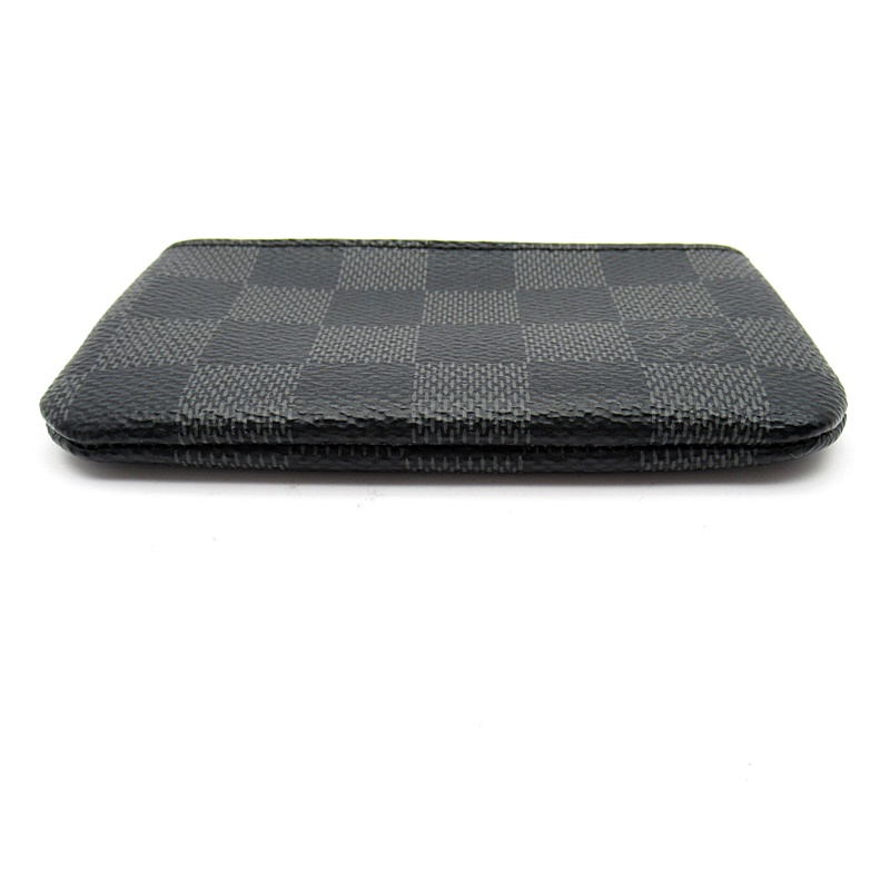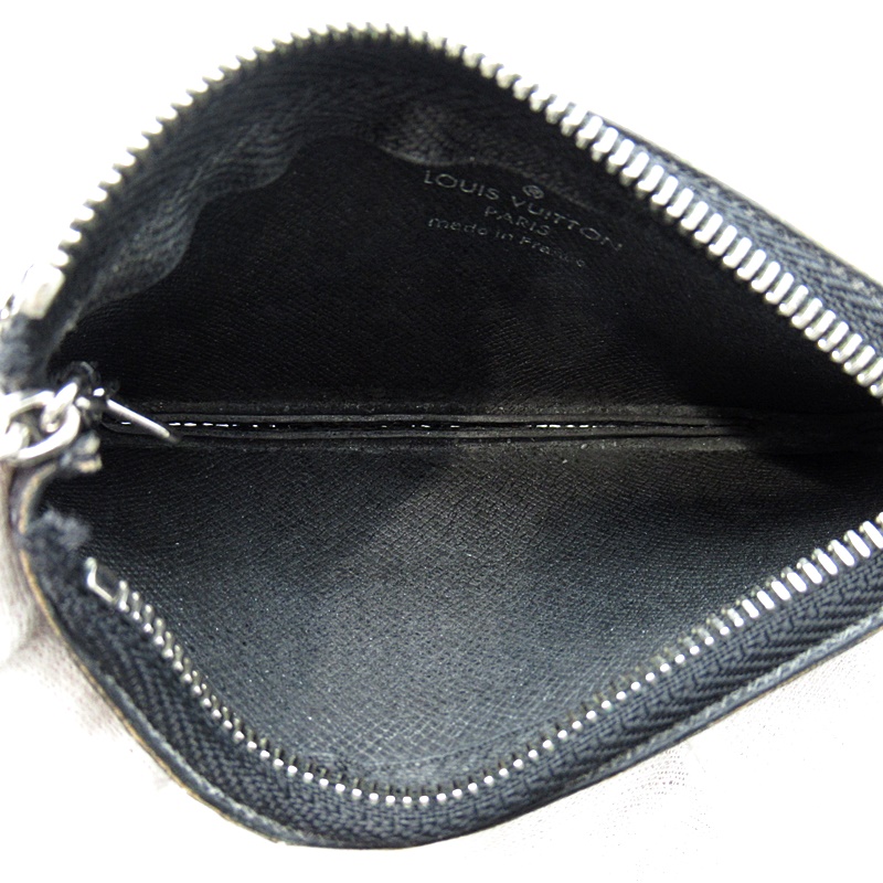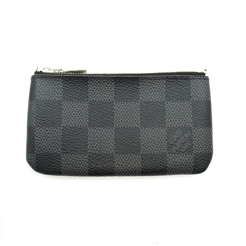USED品。アイコニックなブラックとグレーのダミエ・グラフィット キャンバスに、シルバーカラーのメタルのファスナー、チェーン、キーホルダーを組み合わせた「ポシェット・クレ」。機能的かつエレガントなアクセサリーです。