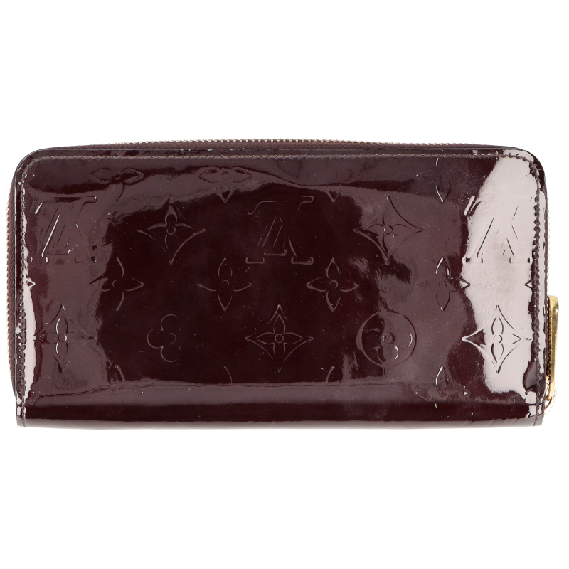 USED品。廃盤品。光沢感のあるパテントカーフのモノグラム・ヴェルニ レザーがすっきりとしたフォルムを引き立てる、アイコニックな「ジッピー・ウォレット」。カードスロットやファスナー付きコインポケット、大容量のコンパートメントを備えた実用性も魅力。中身を取出しやすいラウンドファスナー開閉式です。