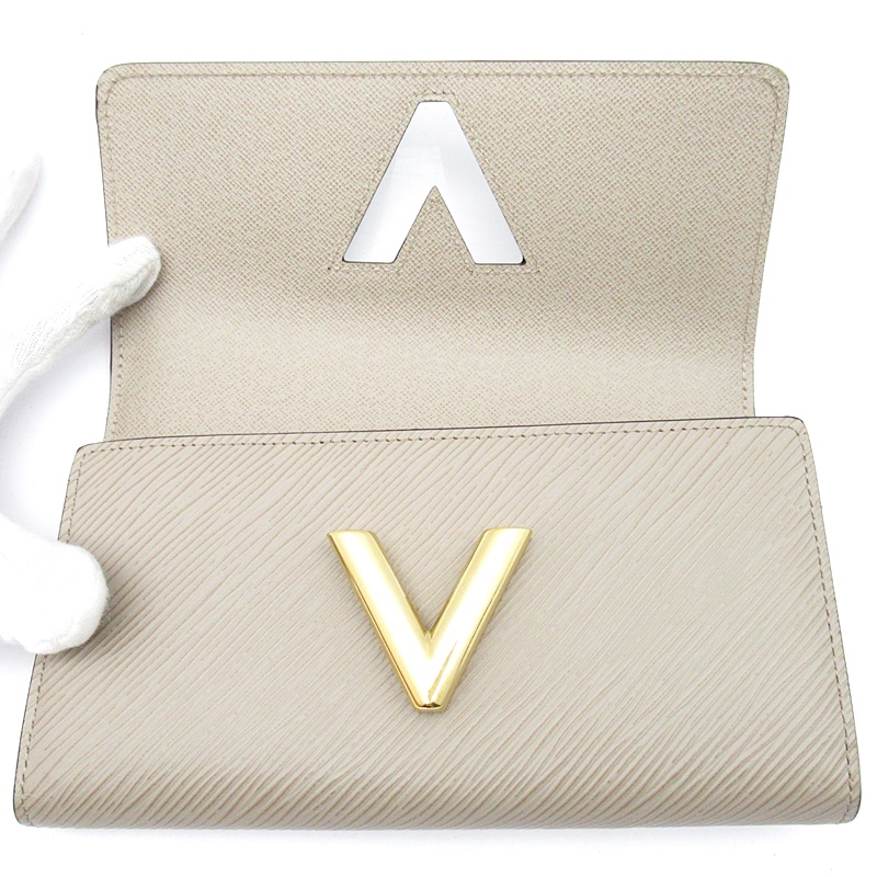 USED品。機能性とファッション性を兼ね備えたデザインをエピ・レザーで仕立てた「ポルトフォイユ・ツイスト」。アイコニックなバッグ「ツイスト」から着想を得たアイテムは、「L」を回転させると「V」へと変形するLV ツイストロックが目を引きます。大容量の2つのコンパートメント、ファスナー付きコインポケット、複数のカードスロットを備えた、中身を整理しやすい内装も魅力です。