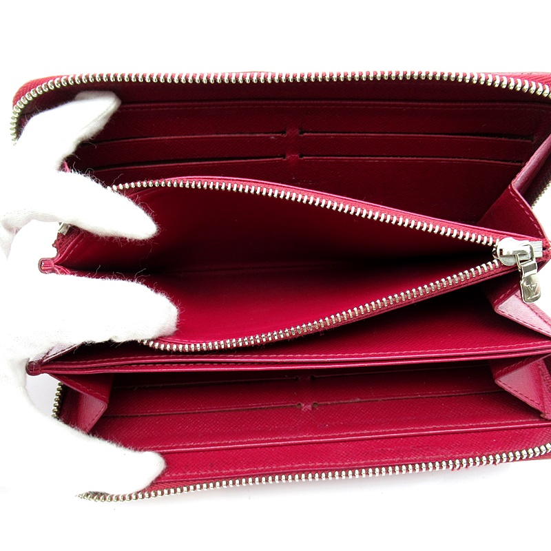 USED品。エレガントなフューシャのエピ・レザーにシルバーカラーのファスナーと引き手をあしらった、アイコニックな財布「ジッピー・ウォレット」。複数のコンパートメント、ファスナー付きポケットを備えた機能的な内装が魅力です。