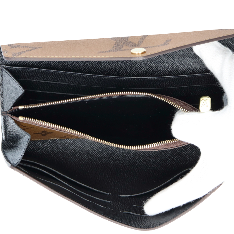 未使用品。モノグラム・キャンバスとモノグラム・ジャイアント リバース キャンバスのエレガントな組み合わせで再解釈された「ポルトフォイユ・サラ」。クラシカルな長方形の財布は、整理しやすい内装と豊富なポケットやカードスロットが魅力です。