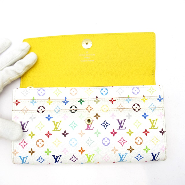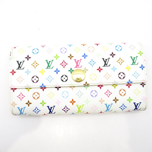 USED品。廃盤品。カラフルなモノグラム柄が目を惹く可愛い長財布。機能的なファスナー開閉小銭入れを仕切りとして、両サイドが札入れになっているアコーディオン仕様になっています。