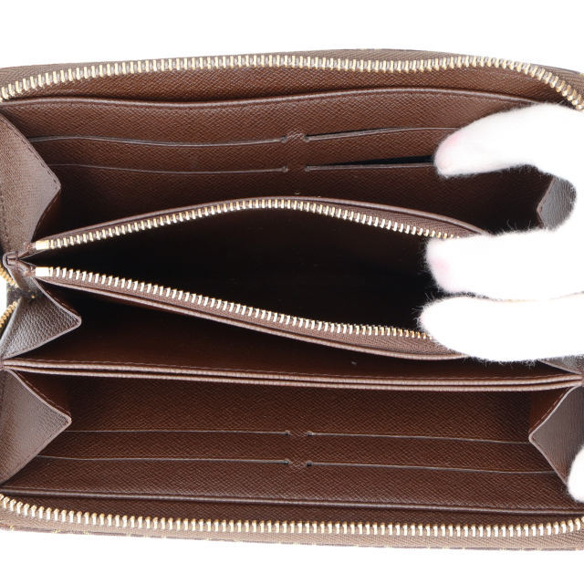 USED品。廃盤品。上質なコットンを使用したモノグラムミニランから定番モデルのジッピーウォレットです。人気の商品なので飽きがこなく末永くご愛用いただけます。