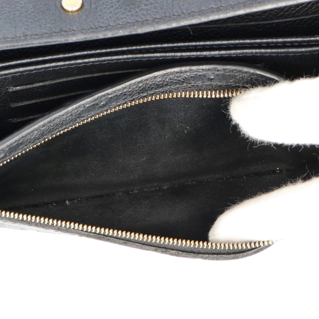 USED品。廃盤品。上質なレザーとモダンな風合いの、デザイン性、機能性共に優れた2つ折タイプの長財布。上品で幅広い世代の方におすすめの逸品でございます。