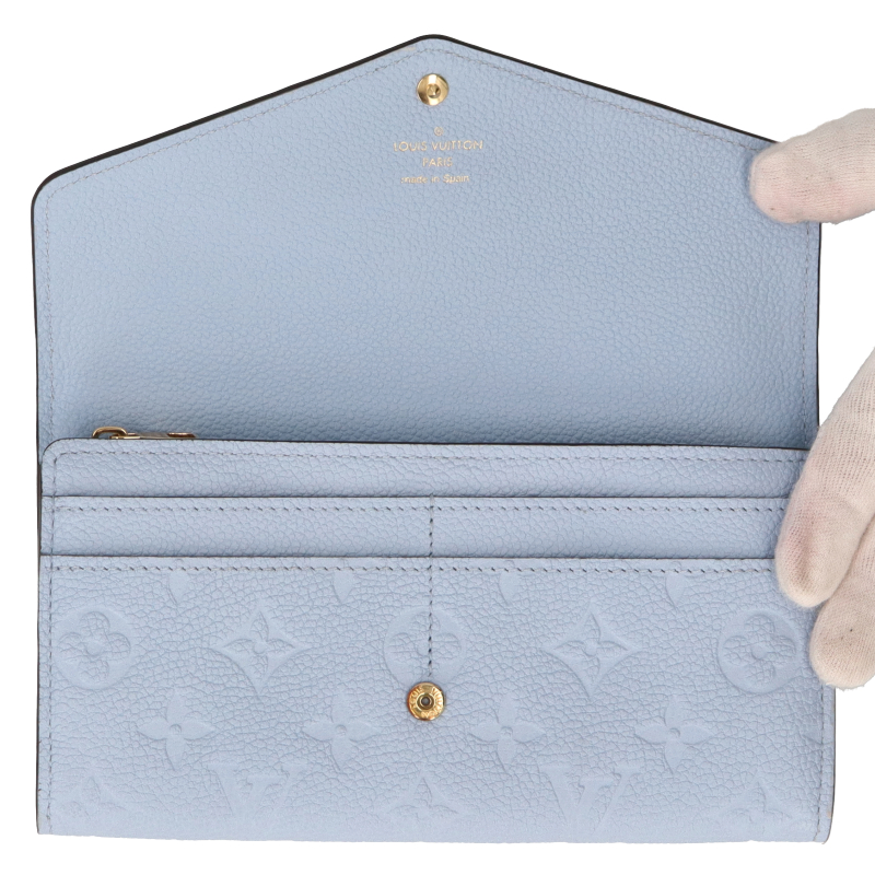 USED品。廃盤品。モノグラム・パターンのエンボス加工が美しいモノグラム・アンプラント レザーでエレガントに仕上げた「ポルトフォイユ・サラ」。Louis Vuittonシグネチャー入りスナップボタンをあしらったエンヴェロップ型のフラップで開閉するエレガントな財布は、この上なく実用的な内装も魅力的です。
