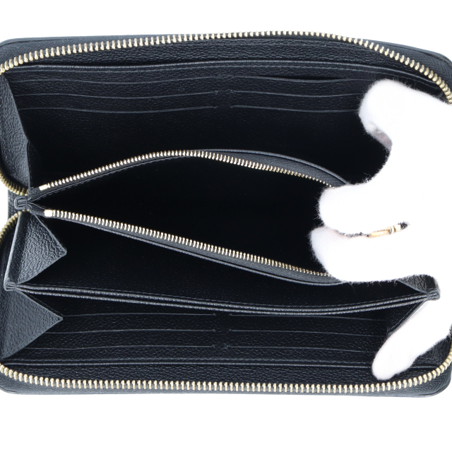 USED品。廃盤品。ブラックのベースに、白の編み込みディテールを効かせたデザイン。紙幣、硬貨、カードなどをすっきり収納する実用性にも優れています。