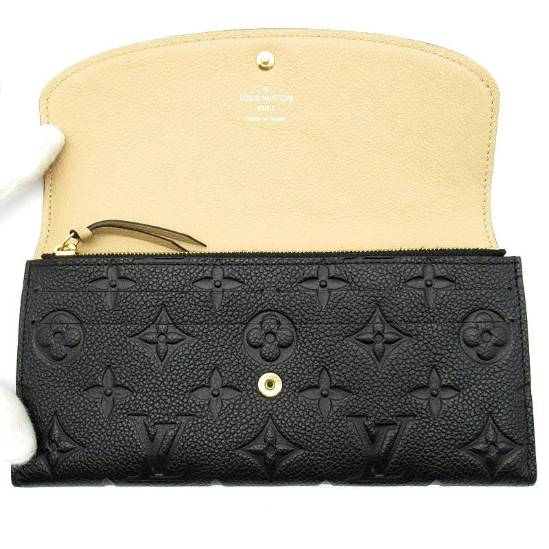 USED品。アイコニックなモノグラム・パターンのエンボス加工を施したモノグラム・アンプラント レザーに、コントラストカラーのなめらかなグレインレザーのライニングで仕上げた「ポルトフォイユ・エミリー」。同系色のスナップ開閉式のエンヴェロップ型のフラップの下に、充分な容量のコンパートメント、ファスナー付きコインポケット、カードスロットを備えた収納力抜群のアイテムです。