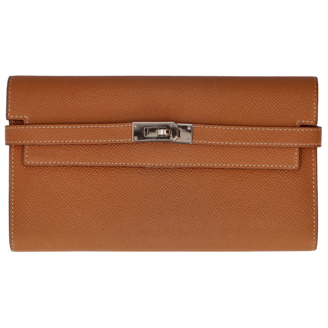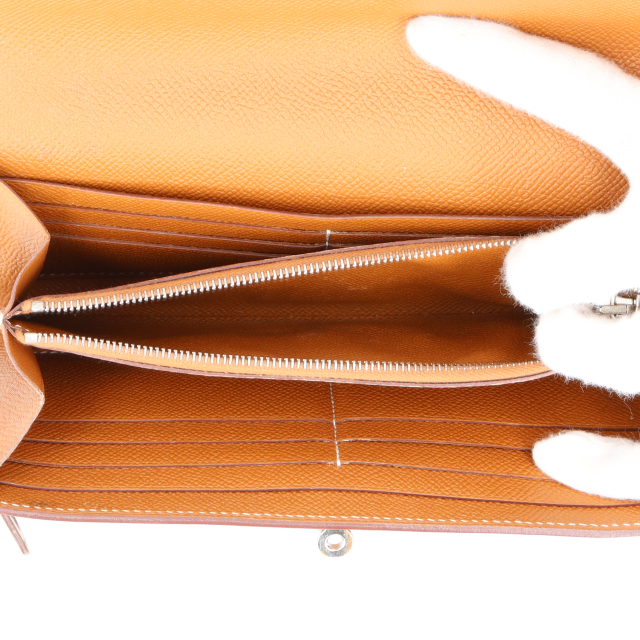 USED品。A刻印(2017年製)。シルバー金具。4大エルメスの一つであるケリーのモチーフが使われた長財布となります。定価は高い分、とてもお買い得です。