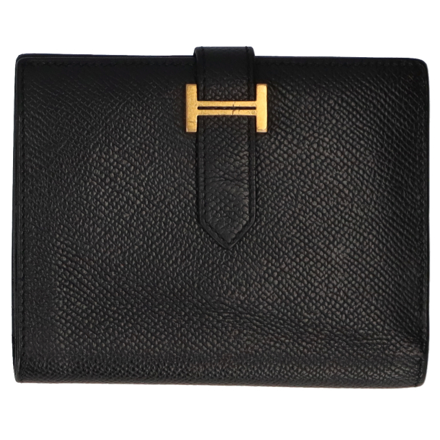 USED品。A刻印(2017年製)。手に持ちやすく、どこかかわいらしさも感じられるベアンコンパクト。折り畳み財布ですが全体的にすっきりしております。