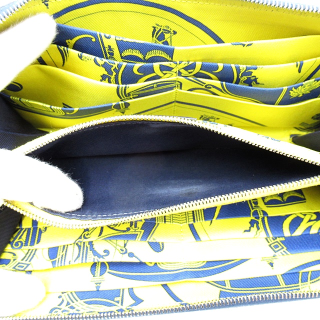 USED品。X刻印(2016年製)。シルバー金具。内側はシルクスカーフで作られたラグジュアリー感溢れるデザインです。表面素材は型押しのヴォーエプソンでキズにも強い素材です。