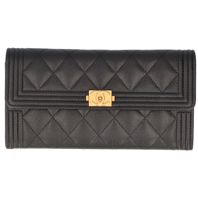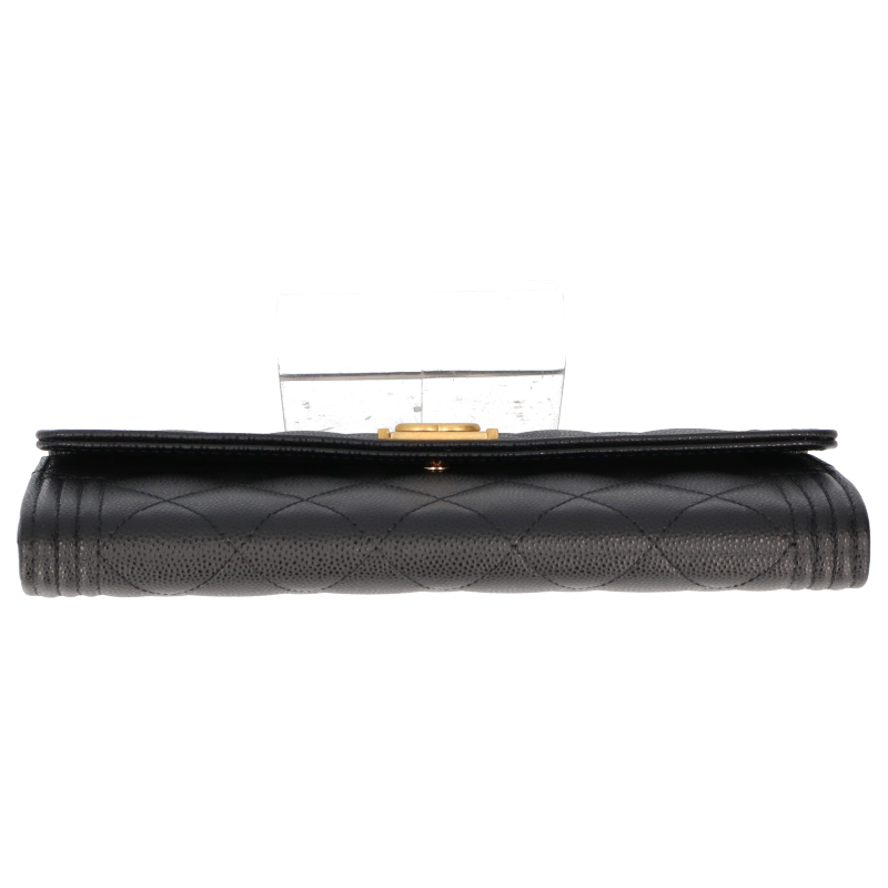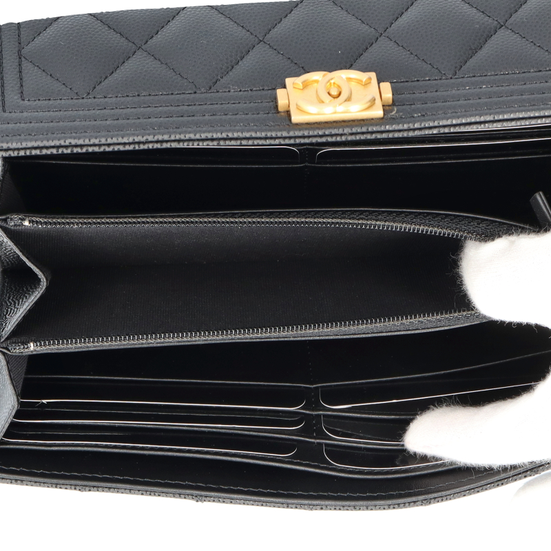 USED品。ゴールド金具。上質なレザーに施されたキルティングデザインが高級感あふれる長財布です。上品でシックな雰囲気のひと品。ポケットも多く、使い勝手のいいひとデザインです。