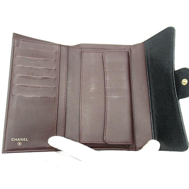 USED品。正面のゴールド金具のココマークがポイントになっていて印象的です。コンパクトサイズですので、少し小さなバッグでも入る便利な財布です。