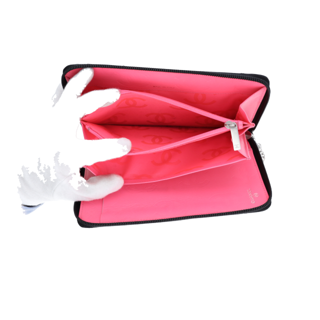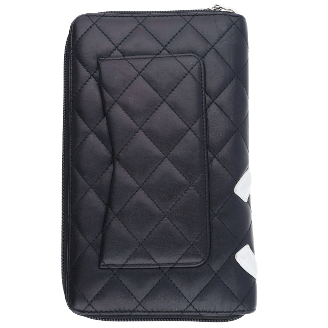 USED品。シャネルの中でも人気の高いカンボンライン。オールブラックカラーですので飽きずに長くご使用いただけます。