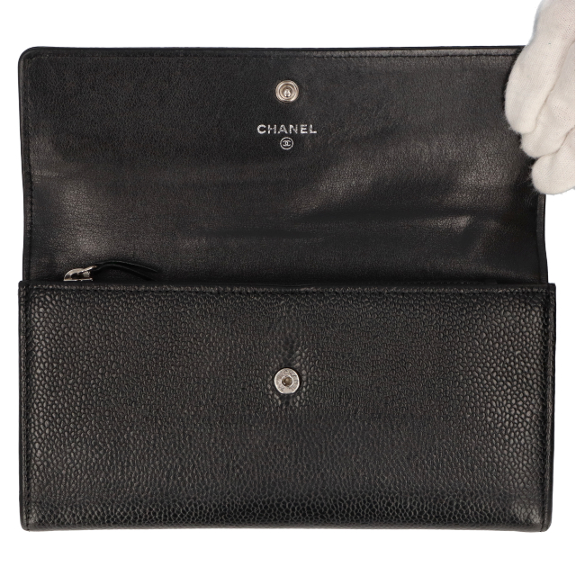 USED品。シャネル定番・人気のココマーク。豊富なポケットで収納力抜群の実用性に優れたお財布です。
