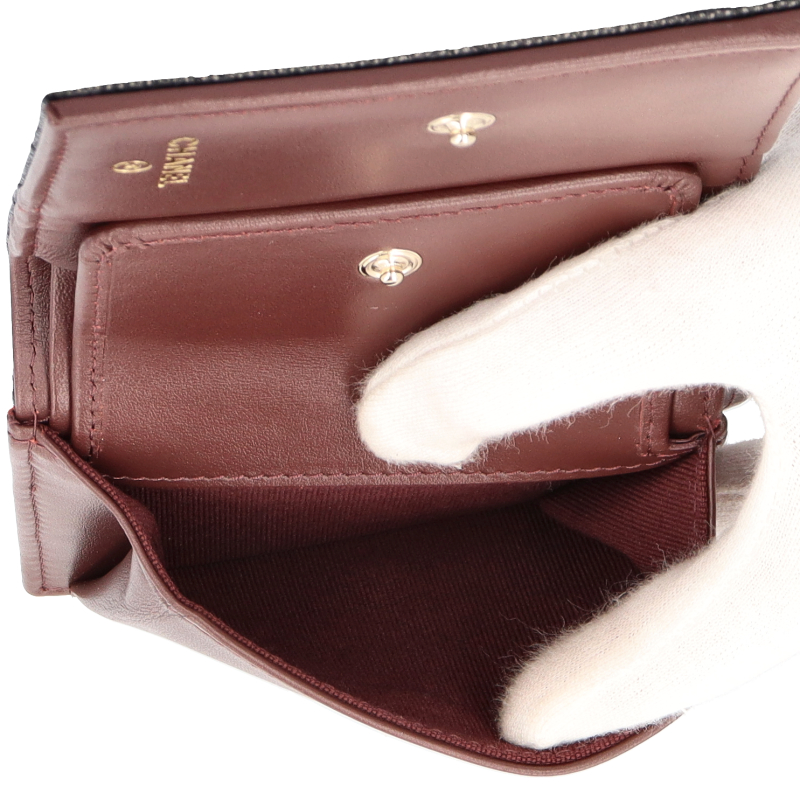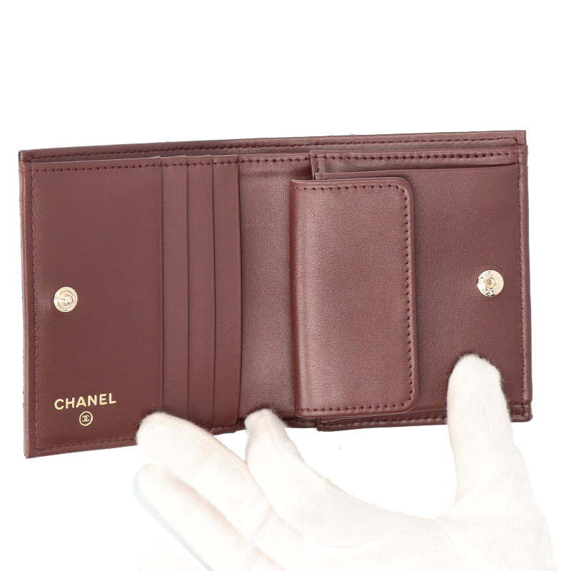 USED品。ゴールド金具。正面のココマークがポイントになっていて印象的です。コンパクトサイズですので、少し小さなバッグでも入る便利な財布です。
