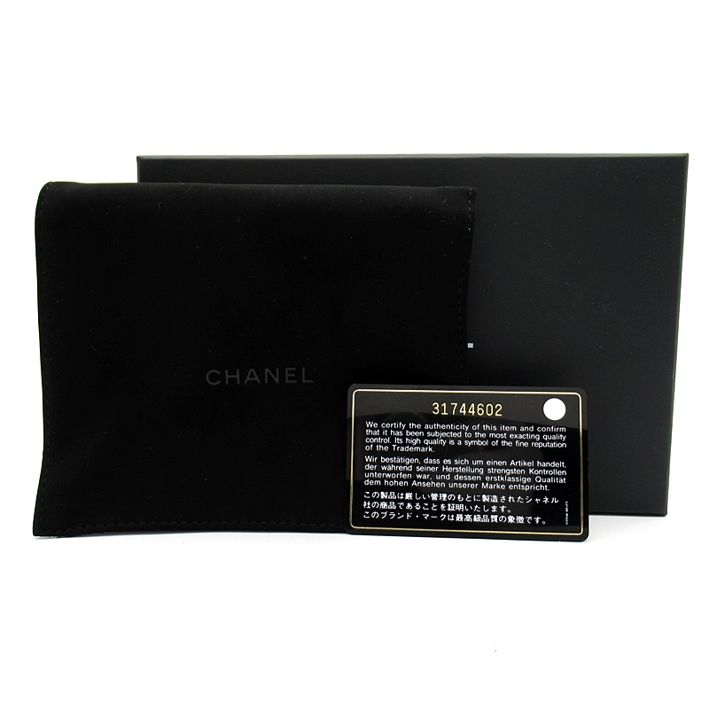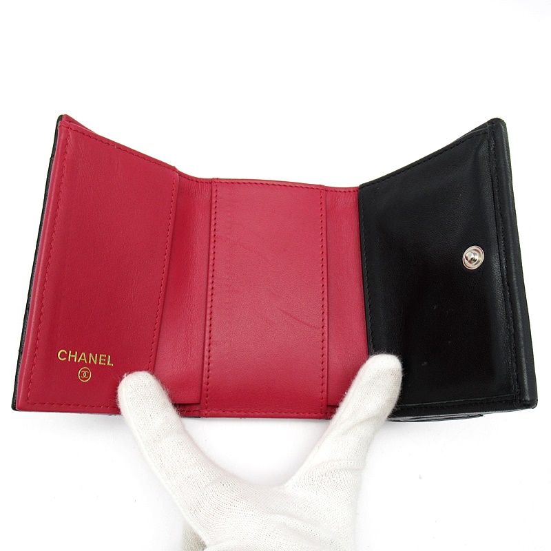 USED品。シルバー金具。上質なラムスキンを使用した小振りなウォレットです。メタルのゴールドとレッドレザーでつくられたCCマークが特徴的で目を惹きます。