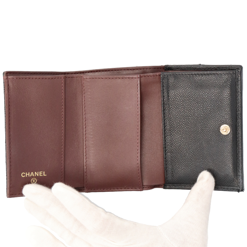 USED品。ゴールド金具。正面のココマークがポイントになっていて印象的です。コンパクトサイズですので、少し小さなバッグでも入る便利な財布です。