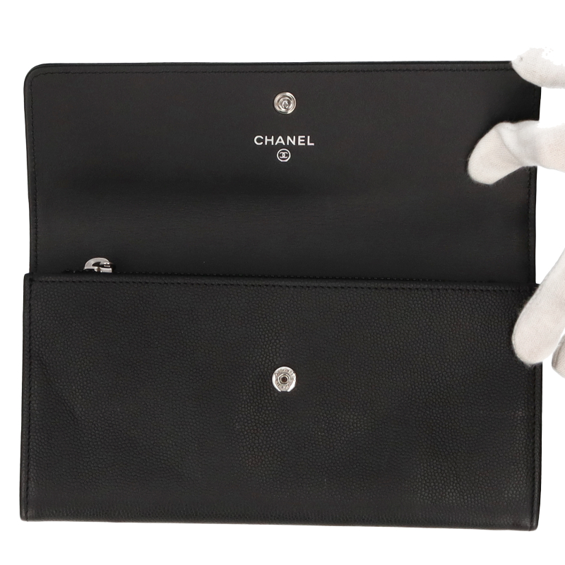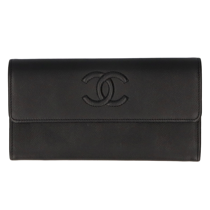 USED品。シャネル定番・人気のココマーク。豊富なポケットで収納力抜群の実用性に優れたお財布です。