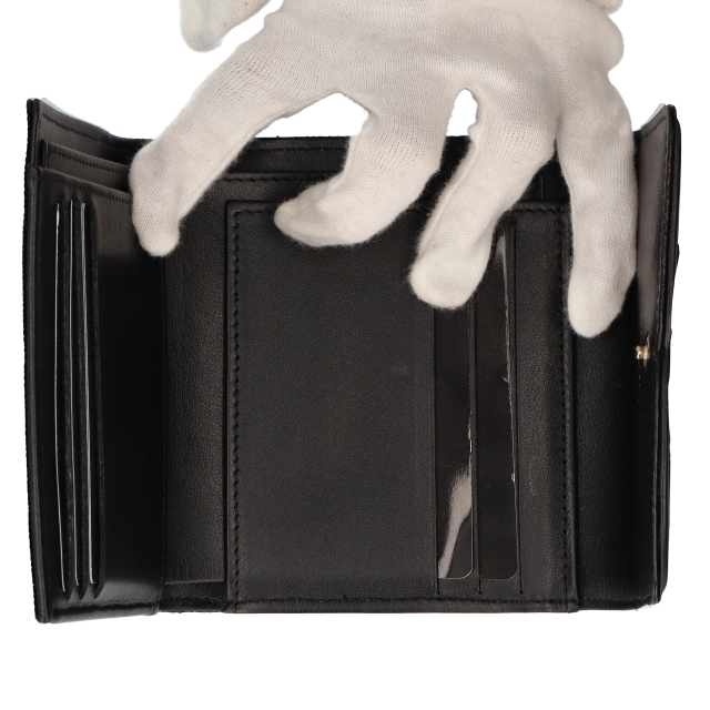 USED品。ゴールド金具。上質なレザーに施されたキルティングデザインが高級感あふれる長財布です。上品でシックな雰囲気のひと品。ポケットも多く、使い勝手のいいデザインです