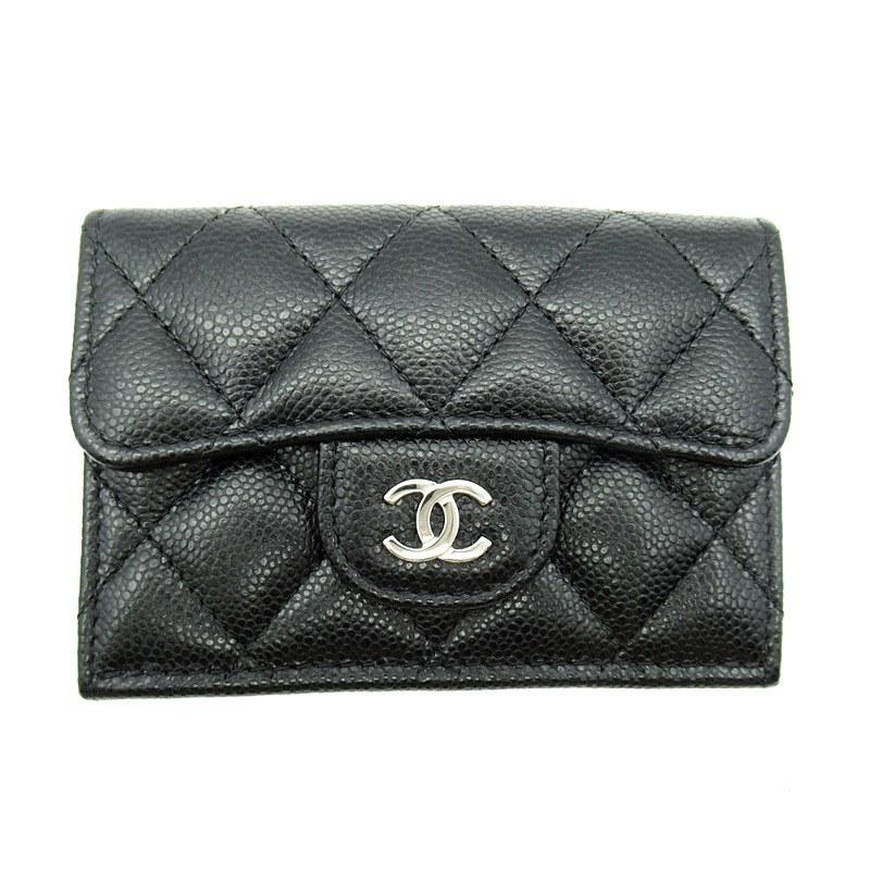 USED品。シルバー金具。マトラッセのデザインになっている財布。カード、小銭などをしっかりと収納できる充実のサイズ感です。