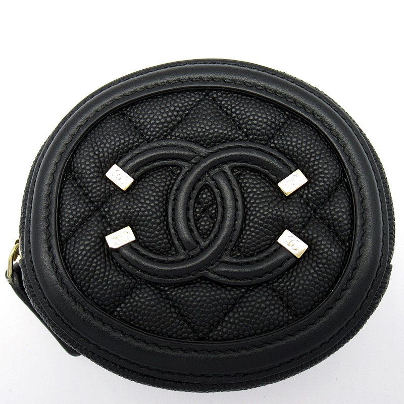 USED品。シャネル「CCフィリグリー 」のコインケースです。定番マトラッセステッチに縁取りを施したデザインで高級感たっぷりなお財布です。