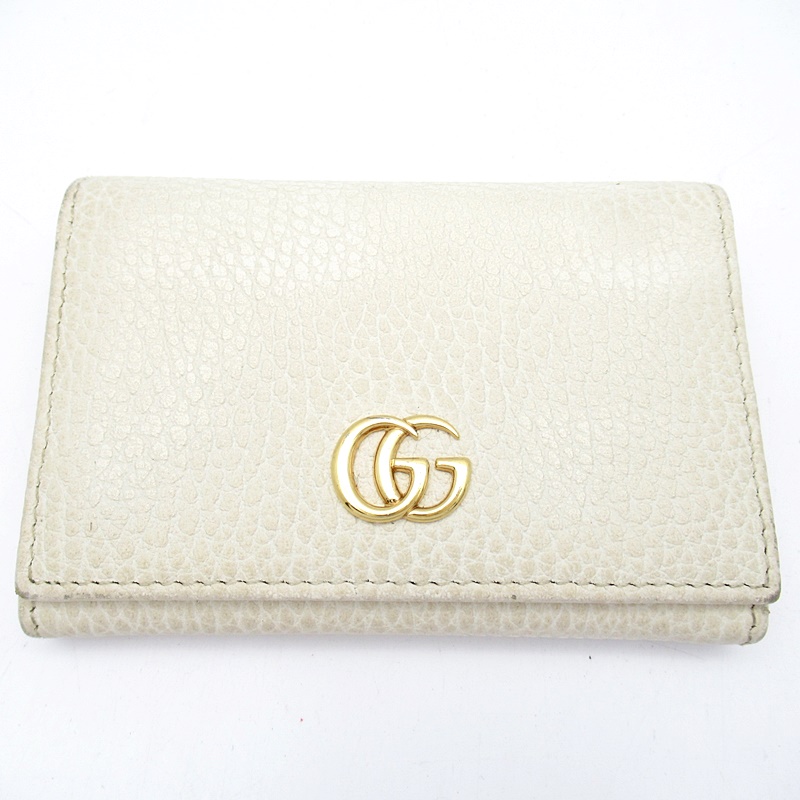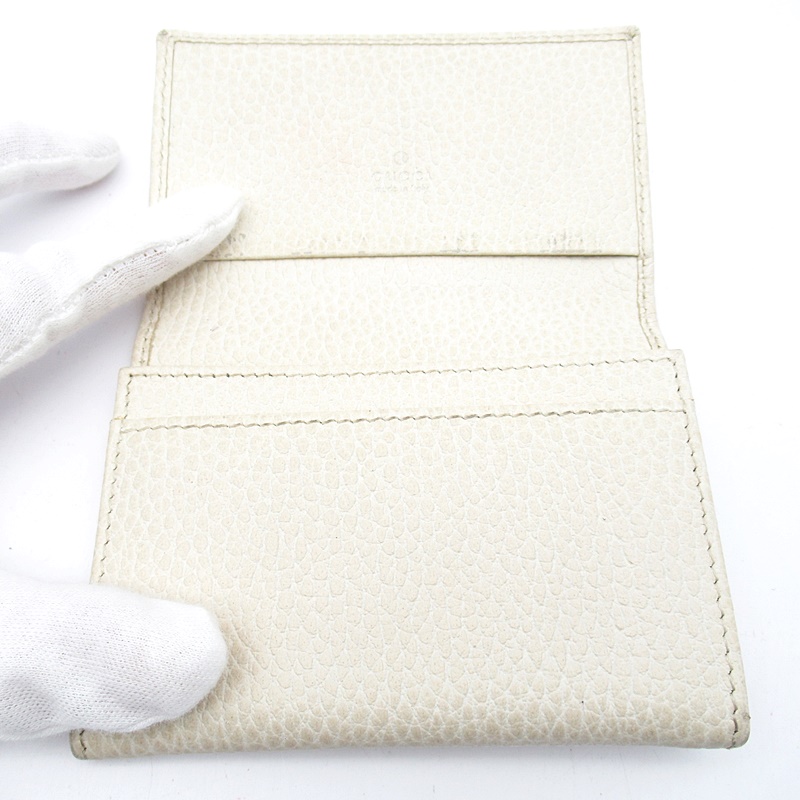 USED品。正面に小さなダブルGのメタルディティールがゴージャスな印象を与えてくれるカードケース。シンプルなデザインに加え、使い込むと味がでるタイプの滑らかなレザーで長くお使いいただけます。カード入れと、オープンポケットが付いていて、収納力もバッチリです。ご自分用にはもちろん、プレゼントにもおススメのアイテムです。
