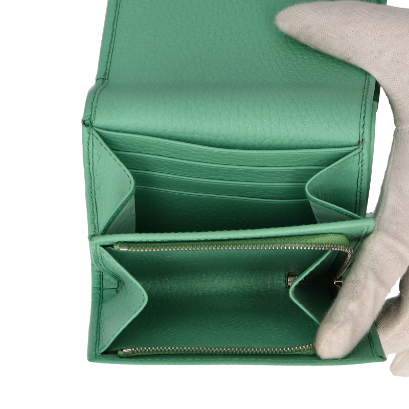 USED品。シンプルでスリムでコンパクトなタイプなので、スーツの内ポケットやズボンのポケットにすっきり収まりまるグッチの2つ折り財布です。