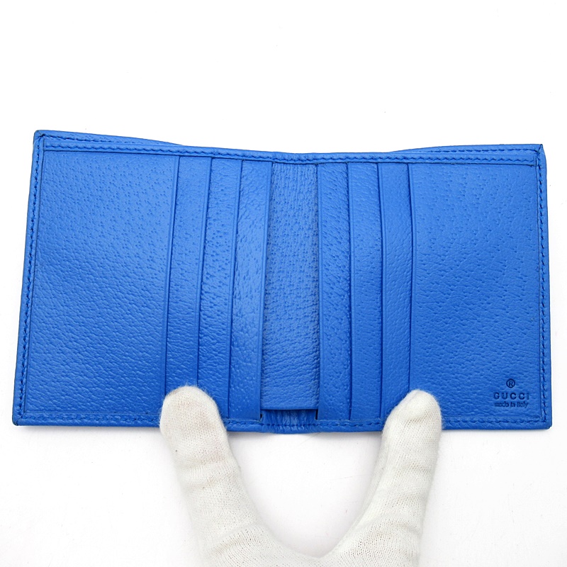 USED品。グッチらしいデザインに現代的なムードをプラスします。デイリーに活躍する機能性を備えた新しいフォルムは、グッチの現代的なビジョンを体現しつつ、伝統美に忠実であり続けています。この二つ折りウォレットは、ブルーのGGクリスタルで仕立てました。