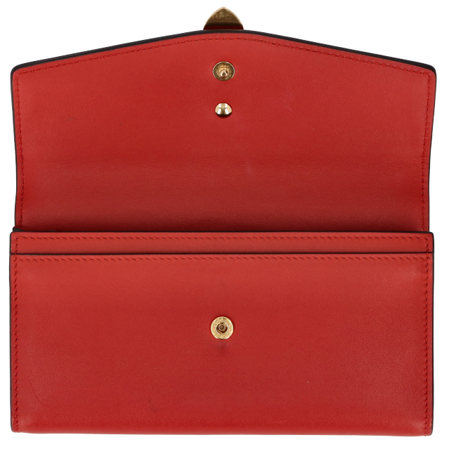 USED品。大人のエレガントさが際立つレザー、モチーフが光る長財布です。シンプルながらも収納が多く使いやすいデザインで日常の全てを収納できます。