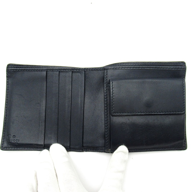 USED品。GG柄を型押しした上質なレザーを使用した風合いが素敵なアイテム。スッキリしたデザインで、ファッションやシーンを選ばずご利用いただけます。