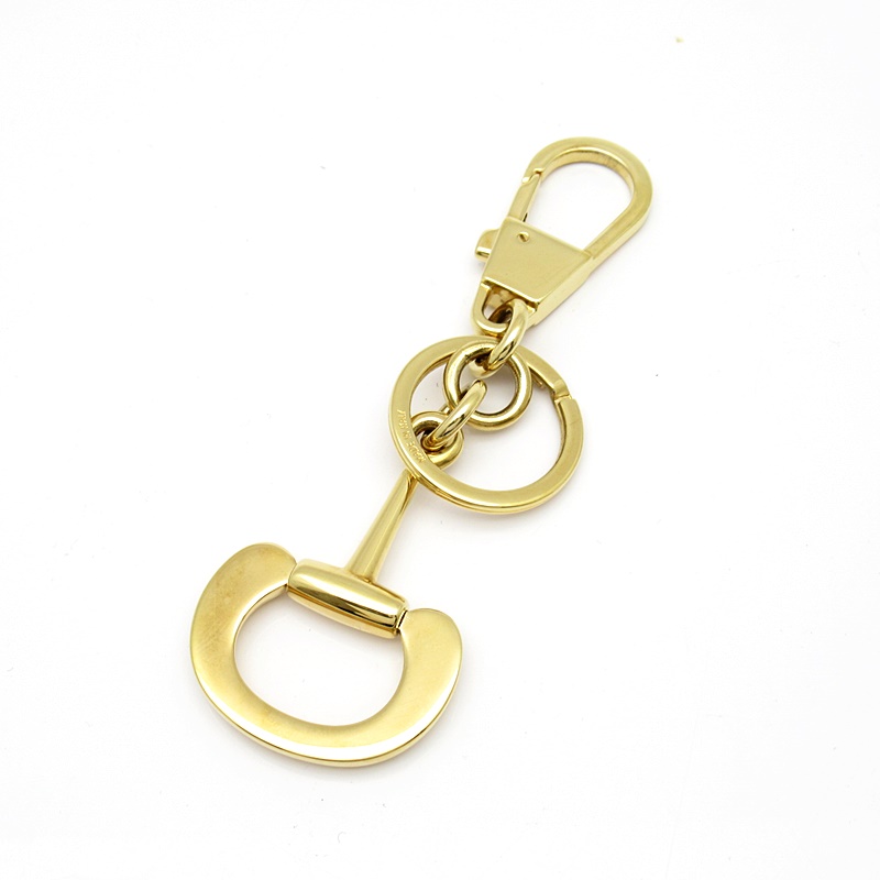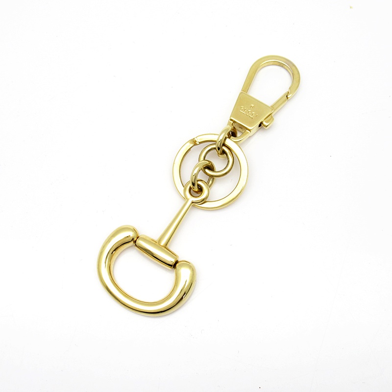 USED品。〔グッチ ホースビット 1955〕ラインの象徴的なモチーフを表現したゴールドトーン メタルのキーチェーン。ダブルリングとバーから成るホースビットはブランドのルーツを物語るもので、乗馬の世界から取り入れたグッチのシンボルの中でも最も代表的なエレメントのひとつとなっています。