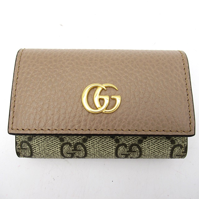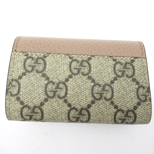 新品。GGスプリーム キャンバスとダスティピンクのレザーを組み合わせ、グッチを象徴するダブルGの小さなハードウェアをあしらったキーケース。内側にはキーフックを6つ備えています。