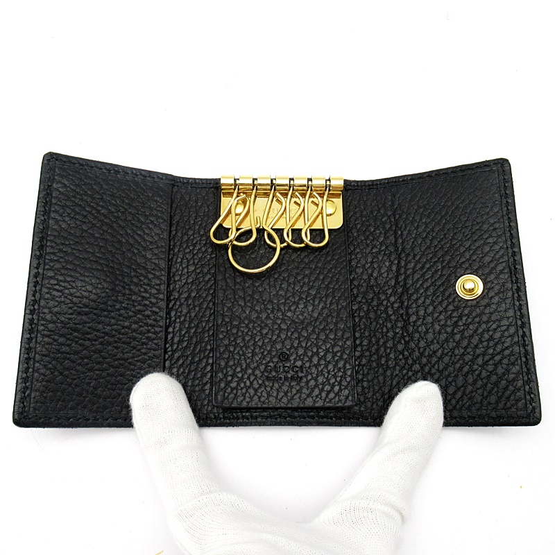 USED品。小さなダブルGメタルディテール付き。上品なデザインと機能性を兼ね備えている6連キーケースです。