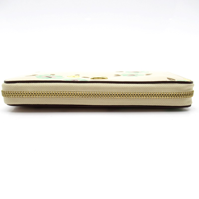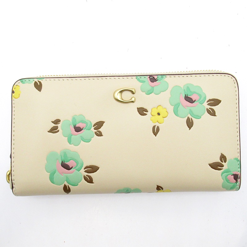 USED品。爽やかな色味が美しいフローラルプリントの長財布。ジップ付き小銭入れなどが付いており、必需品をすっきりと収納できます。