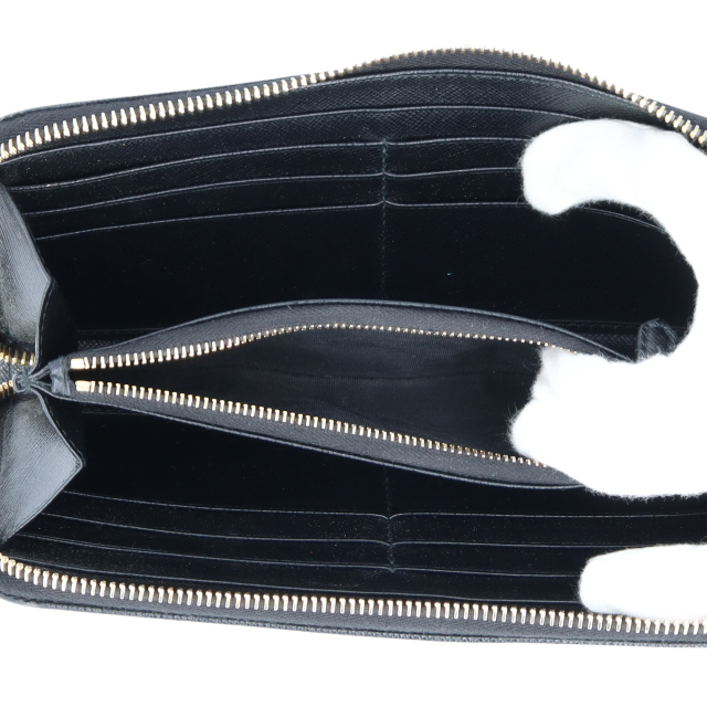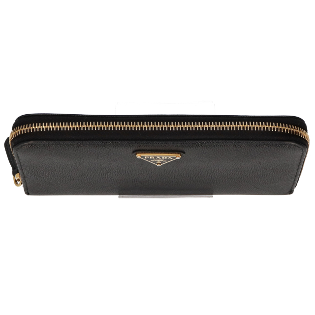 USED品。プラダのレタリングロゴをレザーに施したジップアラウンドの長財布です。シンプルなデザインなので長くご愛用いただける商品です。