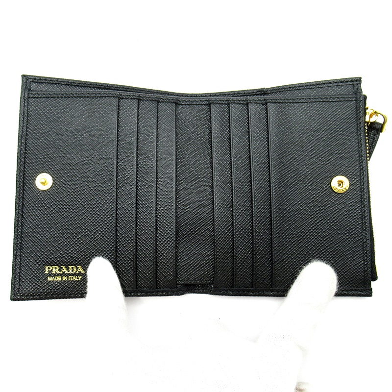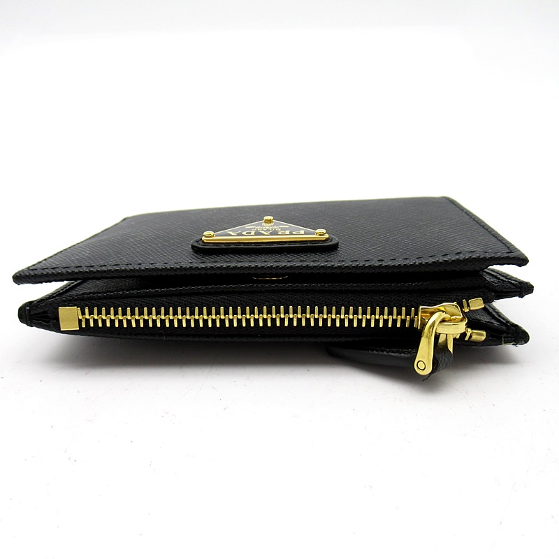 USED品。エレガントで洗練されたレザーのミニ財布。複数の収納部分やポケットを備えたミニマルなデザインです。