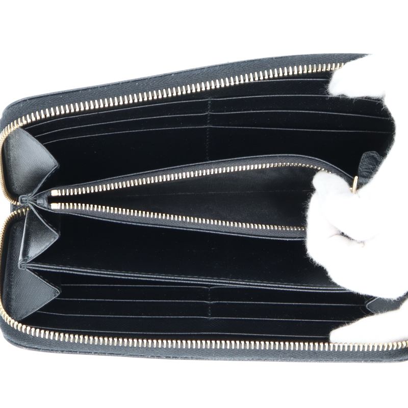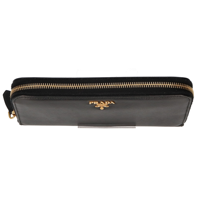 USED品。プラダのレタリングロゴをレザーに施したジップアラウンドの長財布です。シンプルなデザインなので長くご愛用いただける商品です。